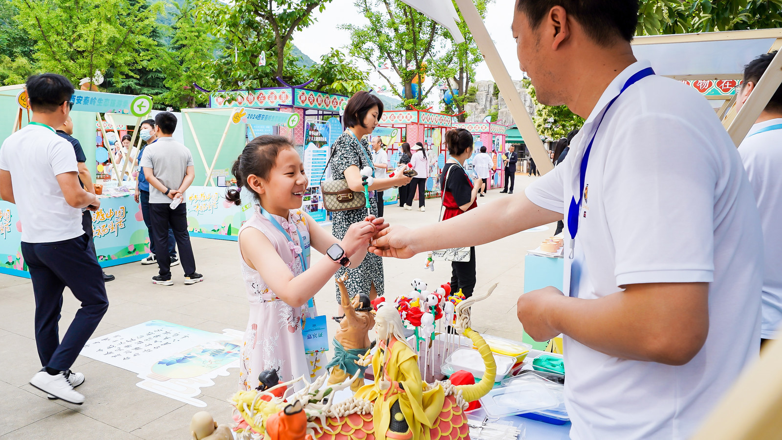 現(xiàn)場,來自文明旅游單位倡議人代表向廣大市民游客發(fā)出文明旅游倡議書,倡導(dǎo)綠色出行、文明旅游,傳播中華文化自信?!渡胶釉婇L安》場景化詩朗誦中的詩篇美句與生態(tài)美景交織輝映,展現(xiàn)出古老西安的深厚文化底蘊與詩意韻味?!扒旯哦?西安有禮”展銷則集中展示了各區(qū)縣旅游文創(chuàng)產(chǎn)品、非遺技藝,讓市民游客沉浸探索西安豐富多元的旅游資源。