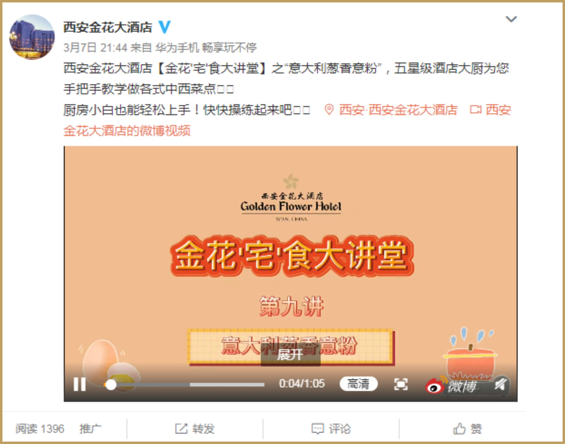 疫情期間,為了豐富百姓餐桌文化,提高居家生活質(zhì)量,讓廣大消費者體味不一樣的人間煙火,金花大酒店推出的“金花宅食大講堂”系列公益節(jié)目,讓廣大消費者足不出戶就能親手做出五星級酒店佳肴美饌。